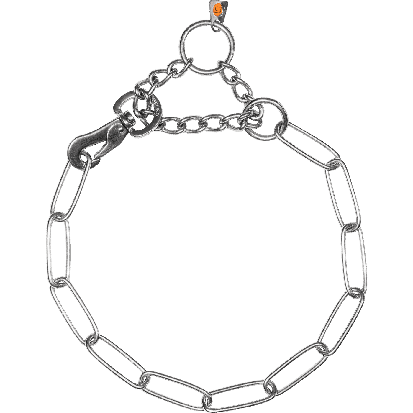 - This collar includes an assembly chain to restrict length and a SPRENGER Hook for easy on/off & size adjustment
