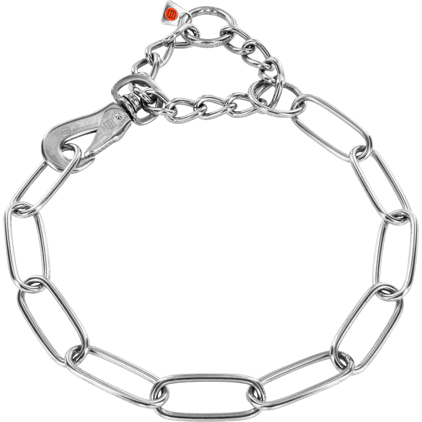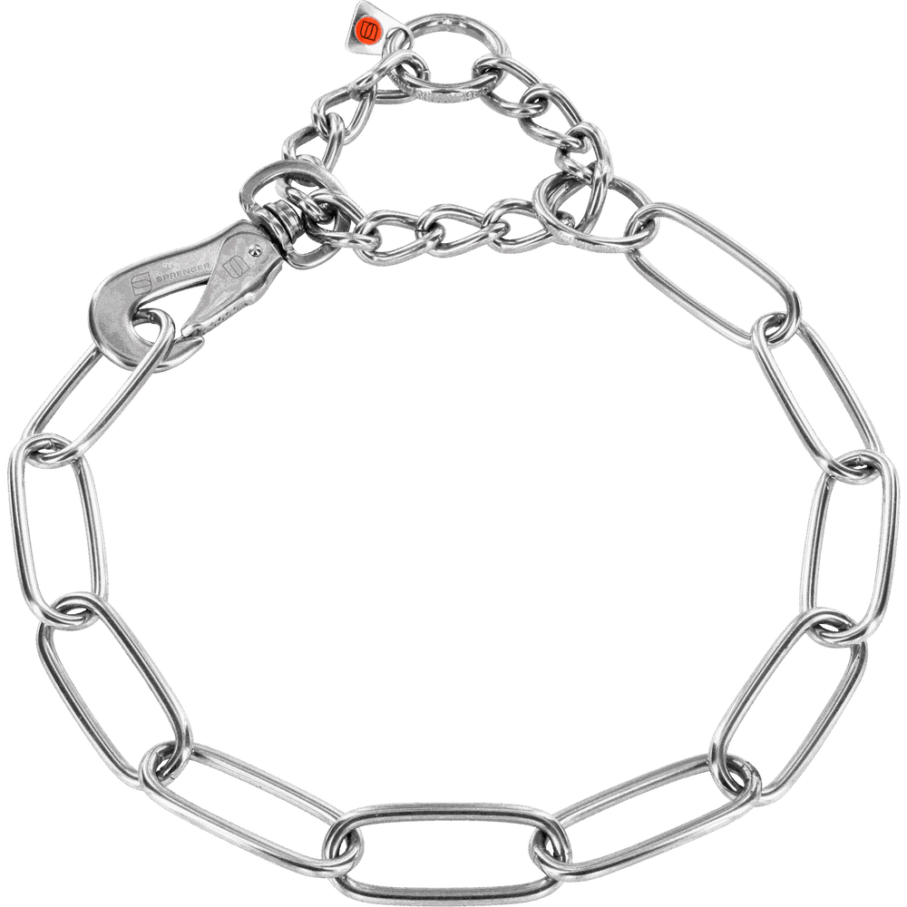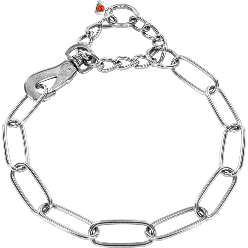 Adjustable Long Chain Link Collar with SPRENGER Hook (Stainless Steel Only) - 4mm