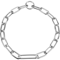 - This chain-style dog collar features an extra long middle link, which you can attach the leash to for minimum impact