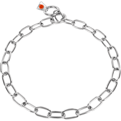 - This chain-type dog collar slides easily through the ring due to the medium-sized links