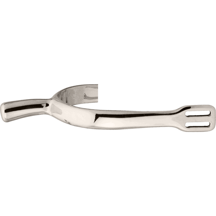 This traditional men's dressage spur is perfect for both training and competition. Crafted from robust, unbreakable German Silver, it offers exceptional strength. Choose from three different rowel end styles to suit your needs.