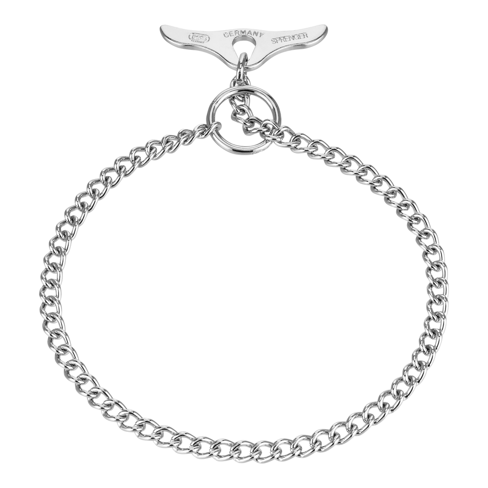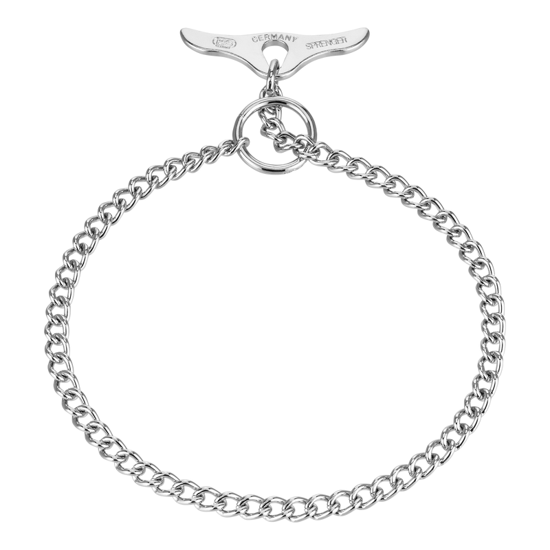 A toggle chain collar should always be used with a leash.