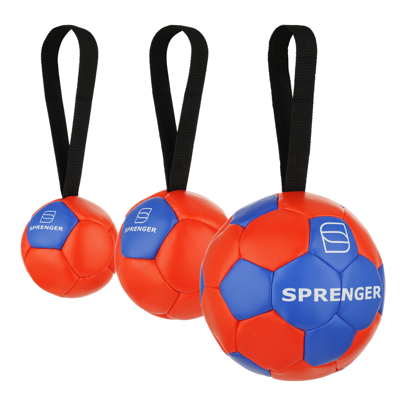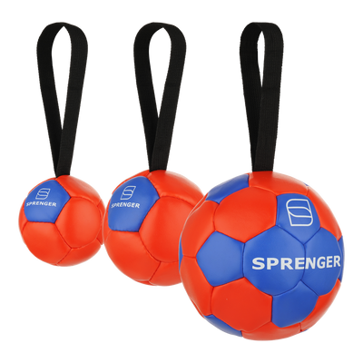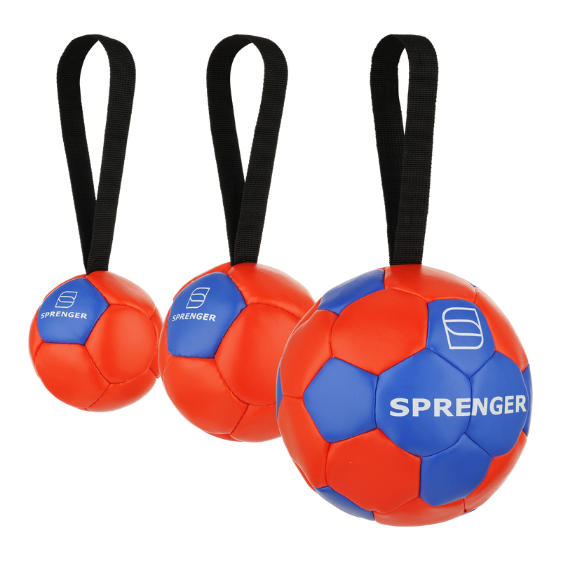 The SPRENGER logo can be found on the front and back of the ball. The vegan leather ball is available in three practical sizes: 4", 4.7", and 7" – one for every size dog.